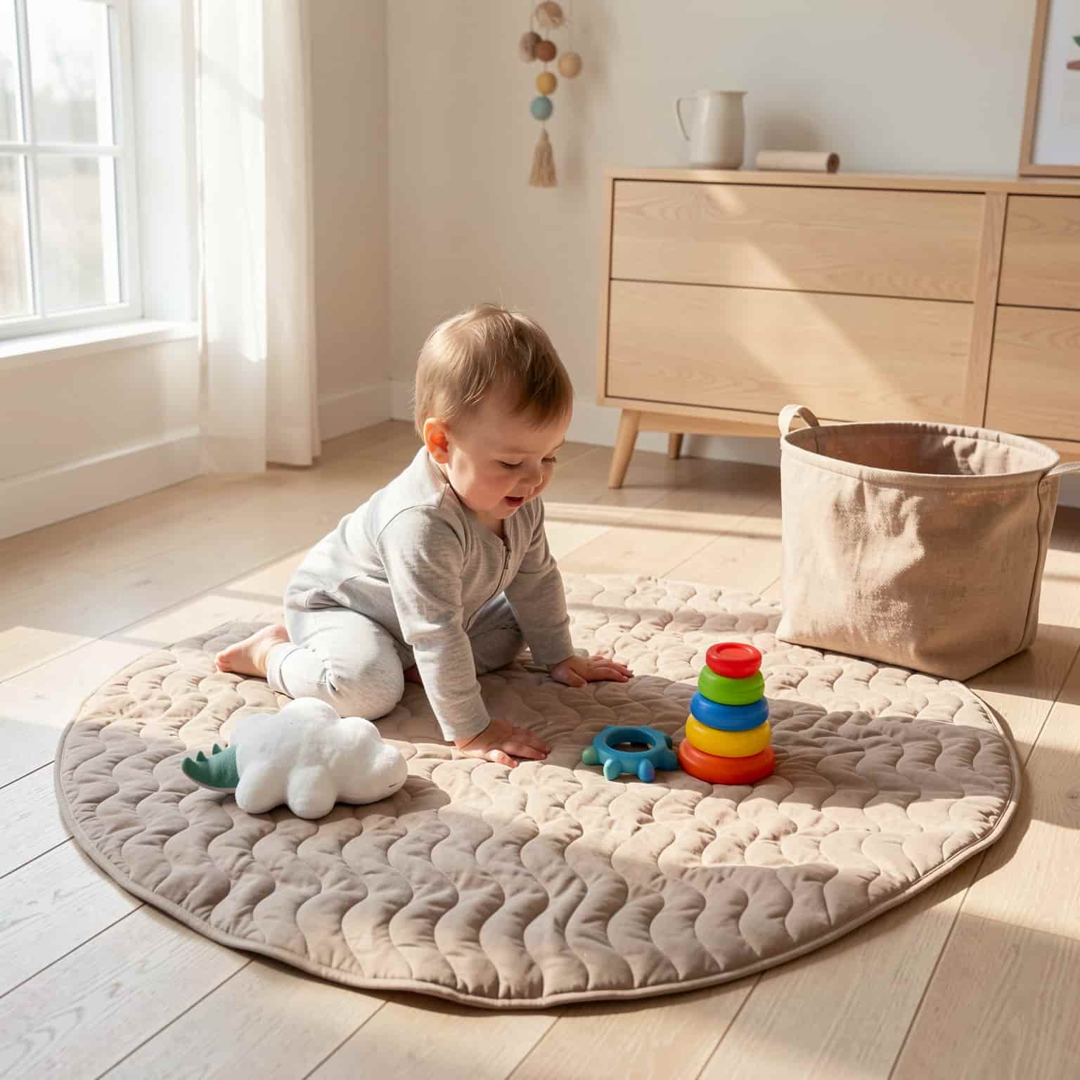 Premium Diamond Stitched Circular Cotton Play Mat